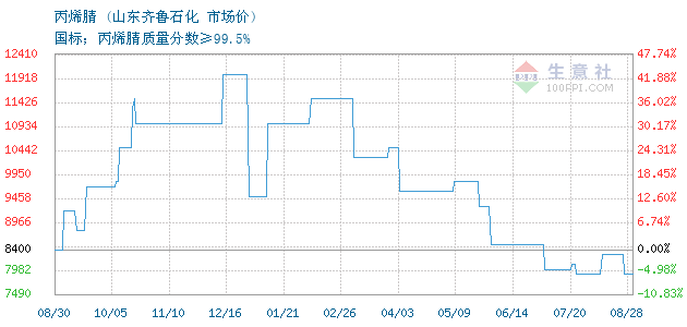 08月28日山东齐鲁石化关于丙烯腈的报价为7900元/吨。丙烯腈的规格:国标;丙烯腈质量分数≥99.5%。该报价有效期为3天。报价提供方:济南普莱华化工有限公司。